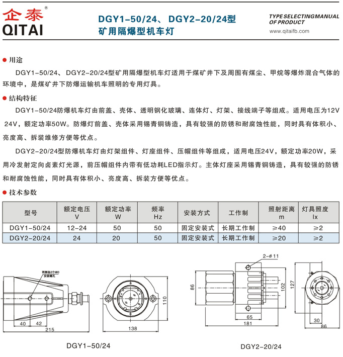 礦用防爆型機(jī)車燈DGY2-20/24型